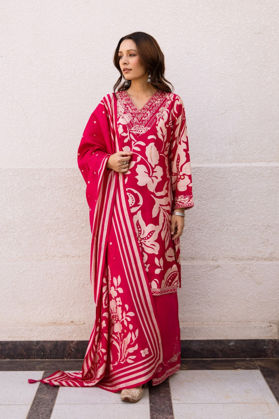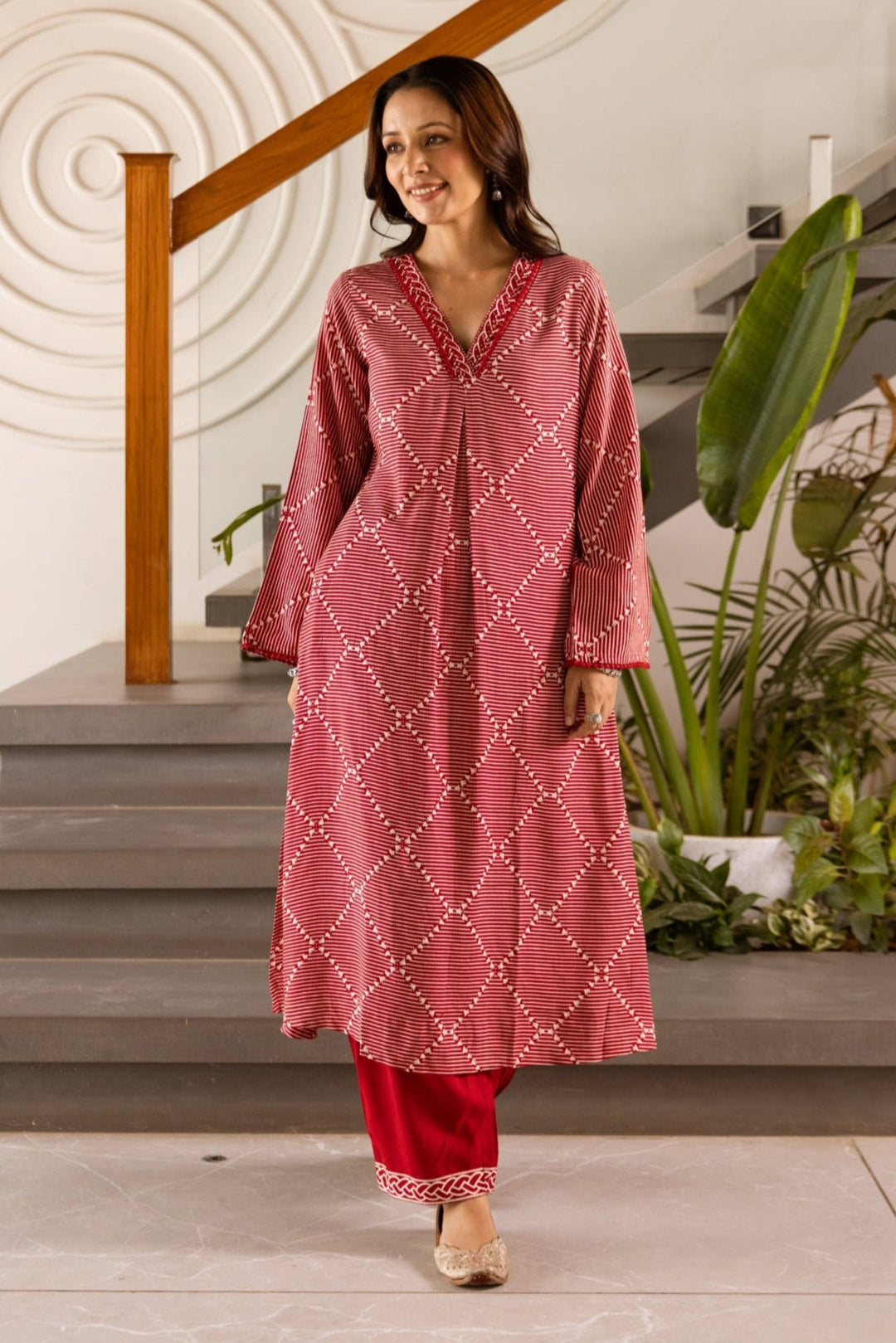 Kabool Carmine printed Kurta pant set