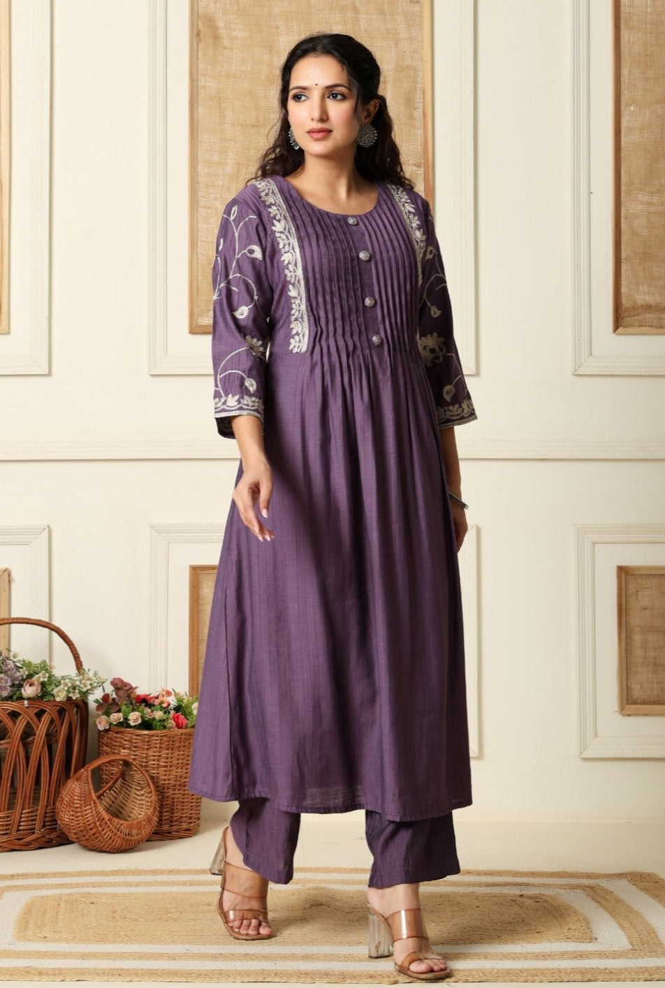 Sumaiya Orchid Embroidery Kurta Pant Set