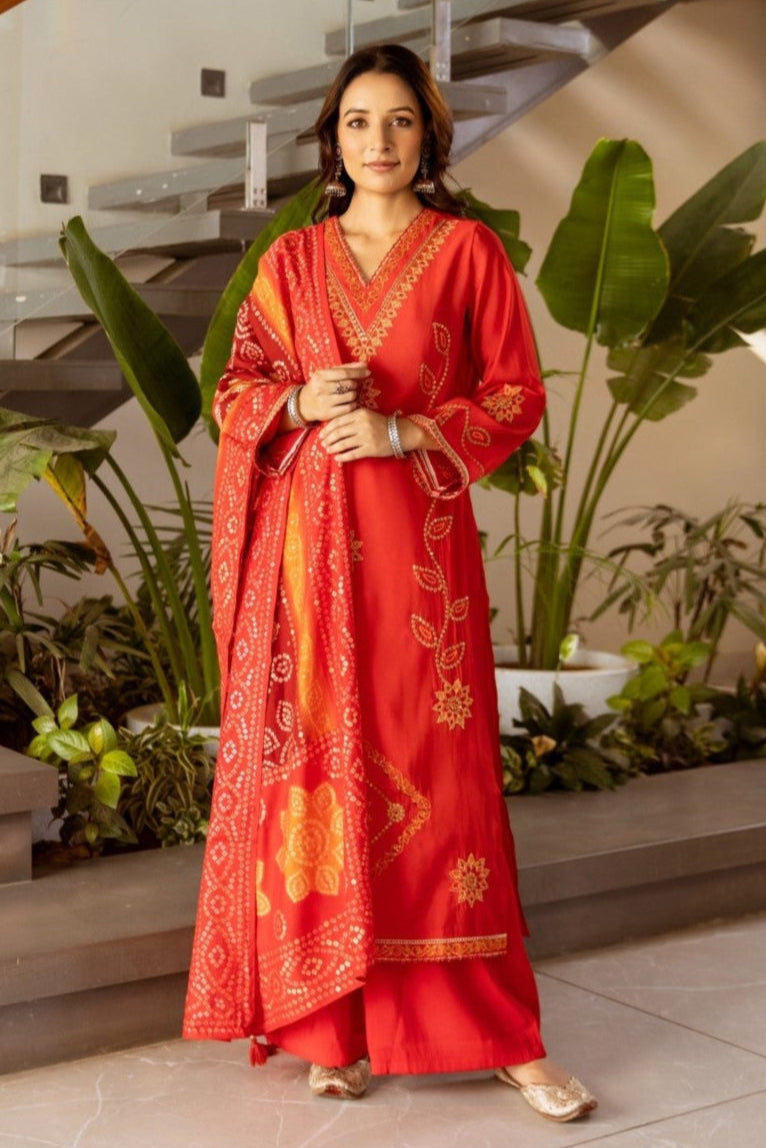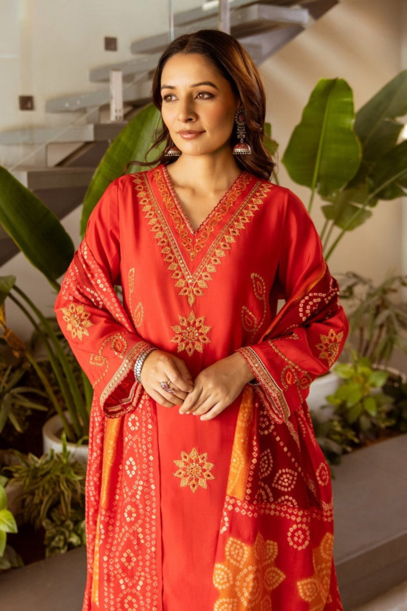 Raftar Flamingo Embroidery Cotton Kurta Pant Set
