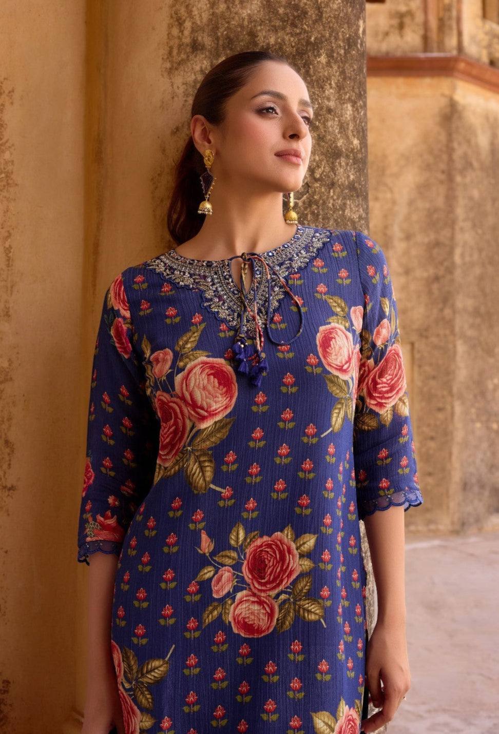 Raftar Slate Embroidery Cotton Kurta Pat set