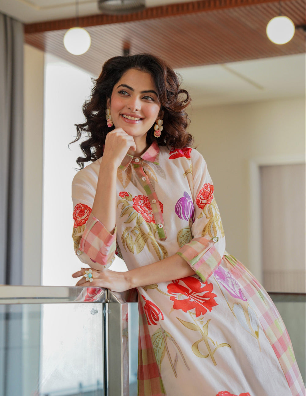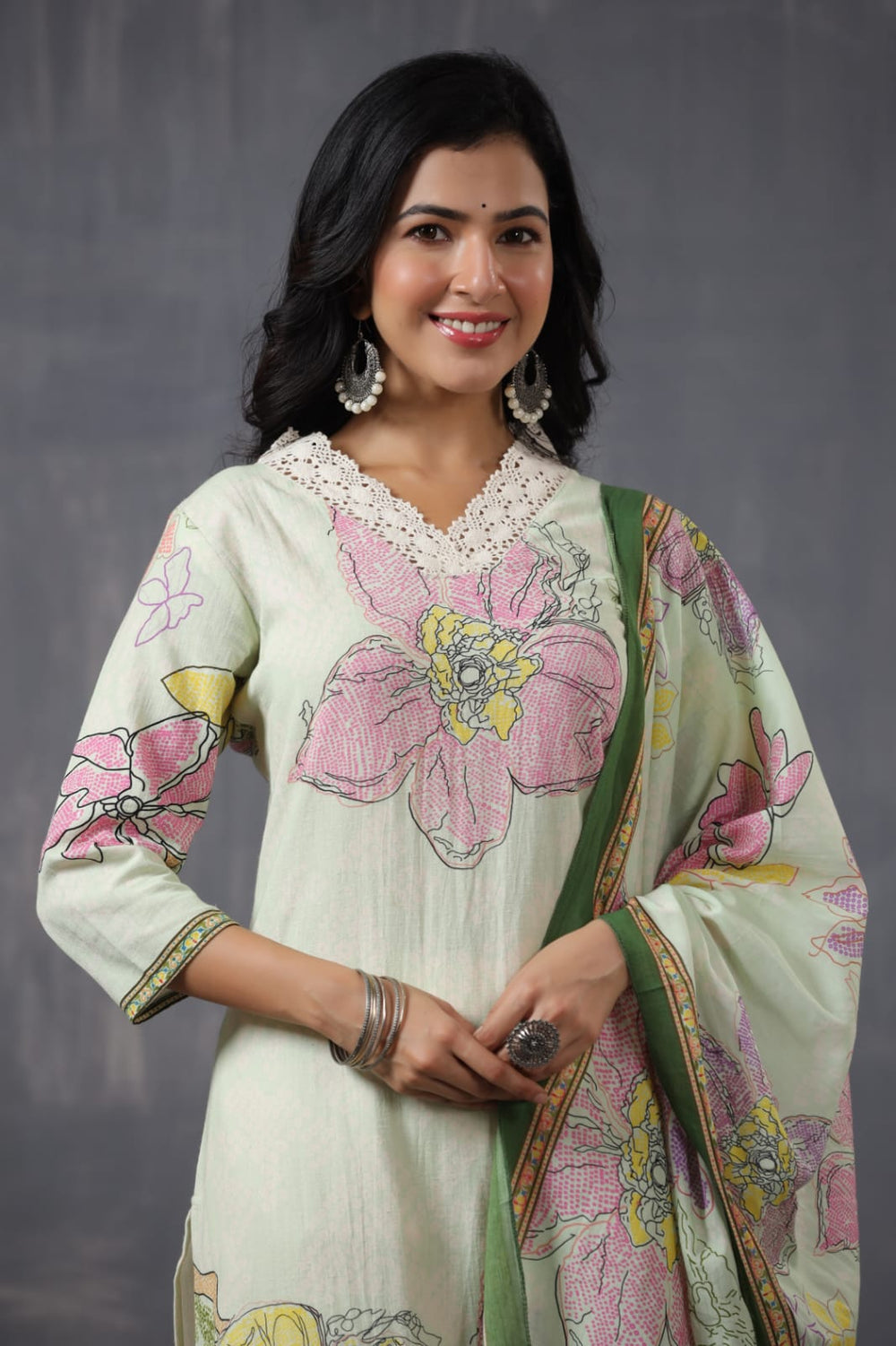 Manjula Caramel Floral Cotton Kurta Pant Set