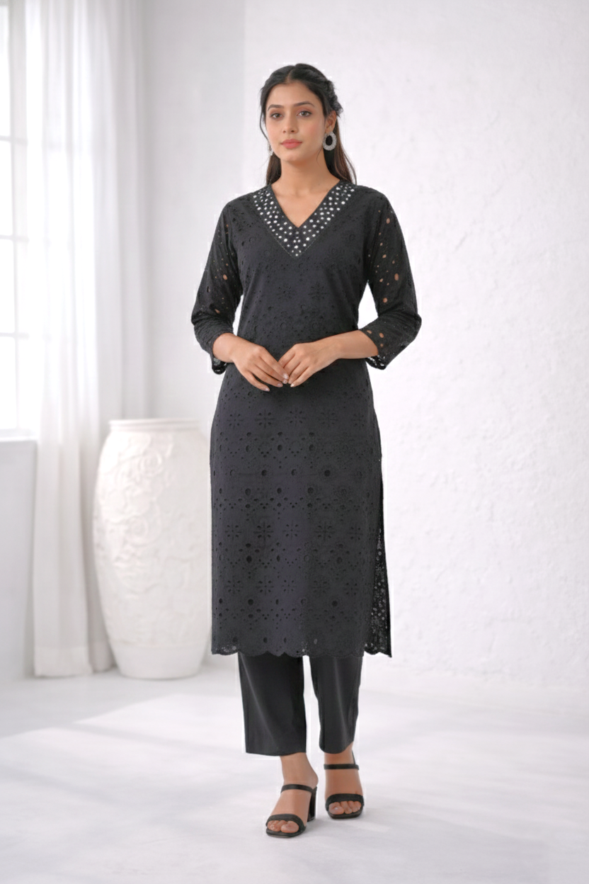 LIPIKA ANGEL SCHIFFLI COTTON KURTA PANT SET