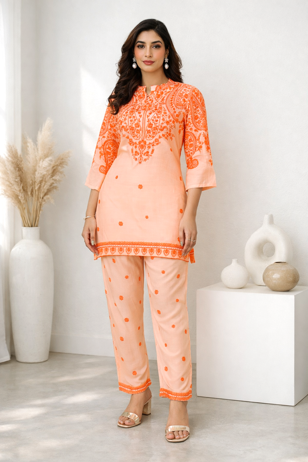 ITI PEARL Embroidered COTTON CO-ORD SET