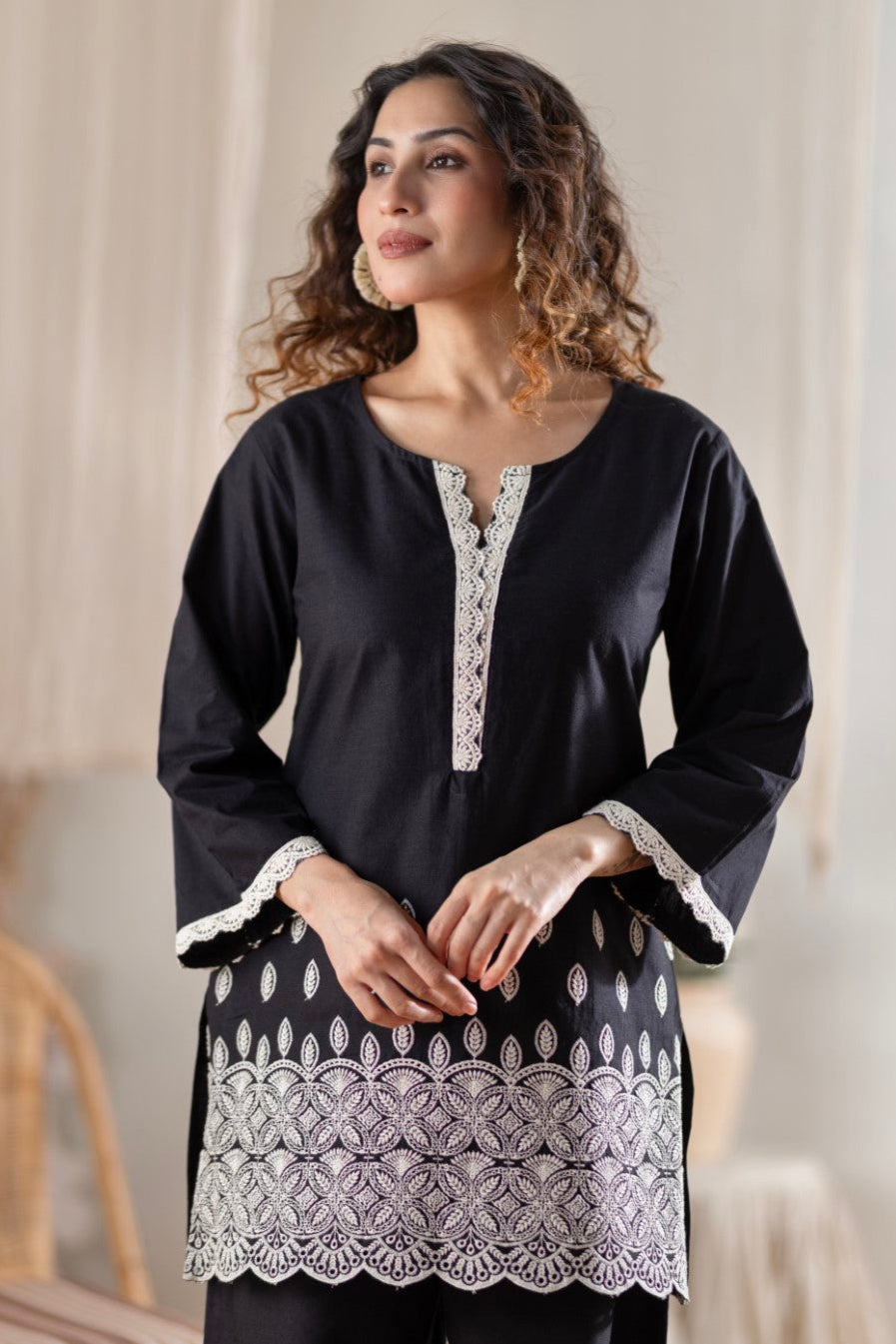 Barista Rose Embroidery Cotton Co-ord Set
