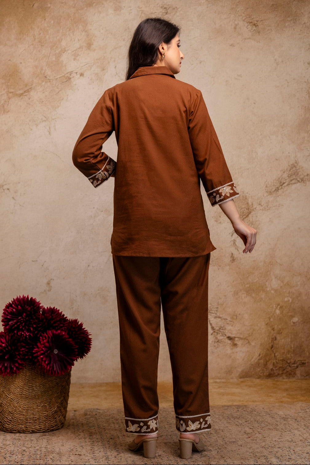 Viyona Mousse Cotton Embroidered Co-ord Set