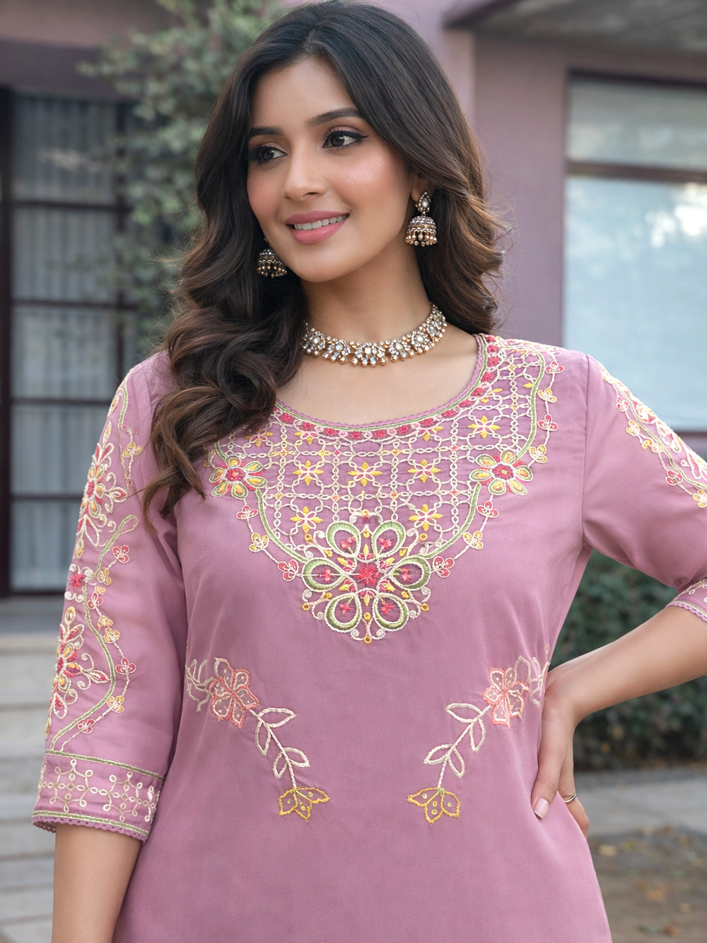 Yami Rose Embroidered Suit Set