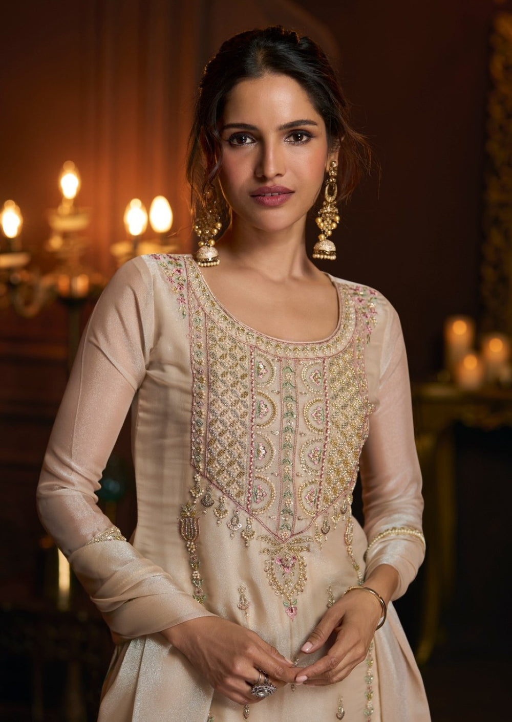 Jagriti Apricot Full Work Suit Set