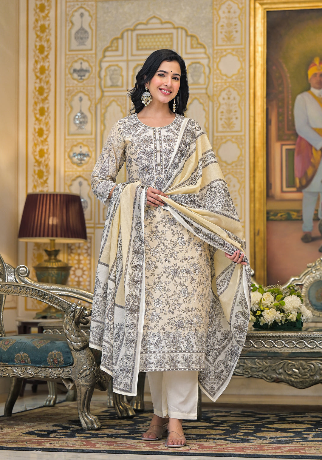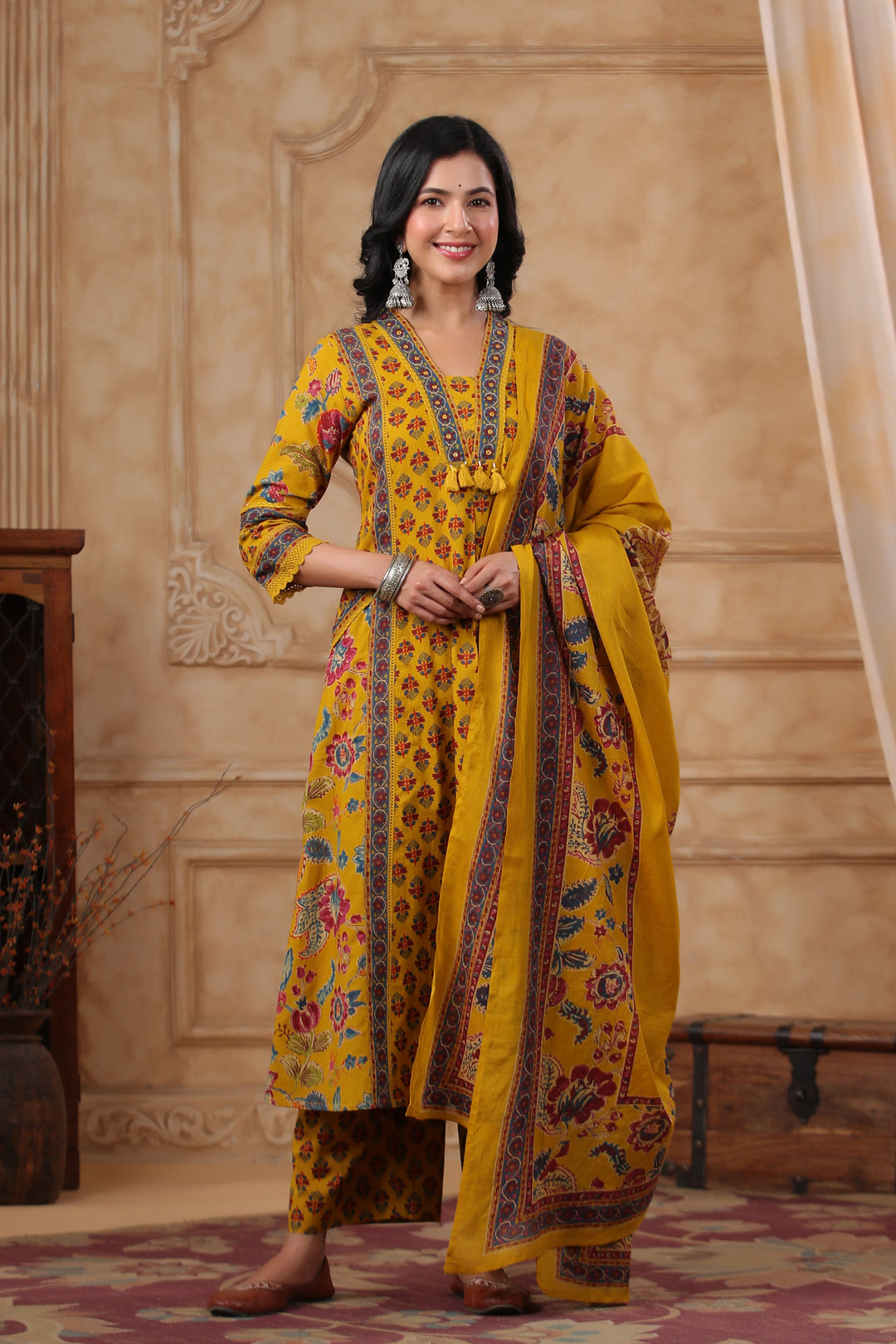 HIYA MUSTARD PRINTED COTTON SUIT SET