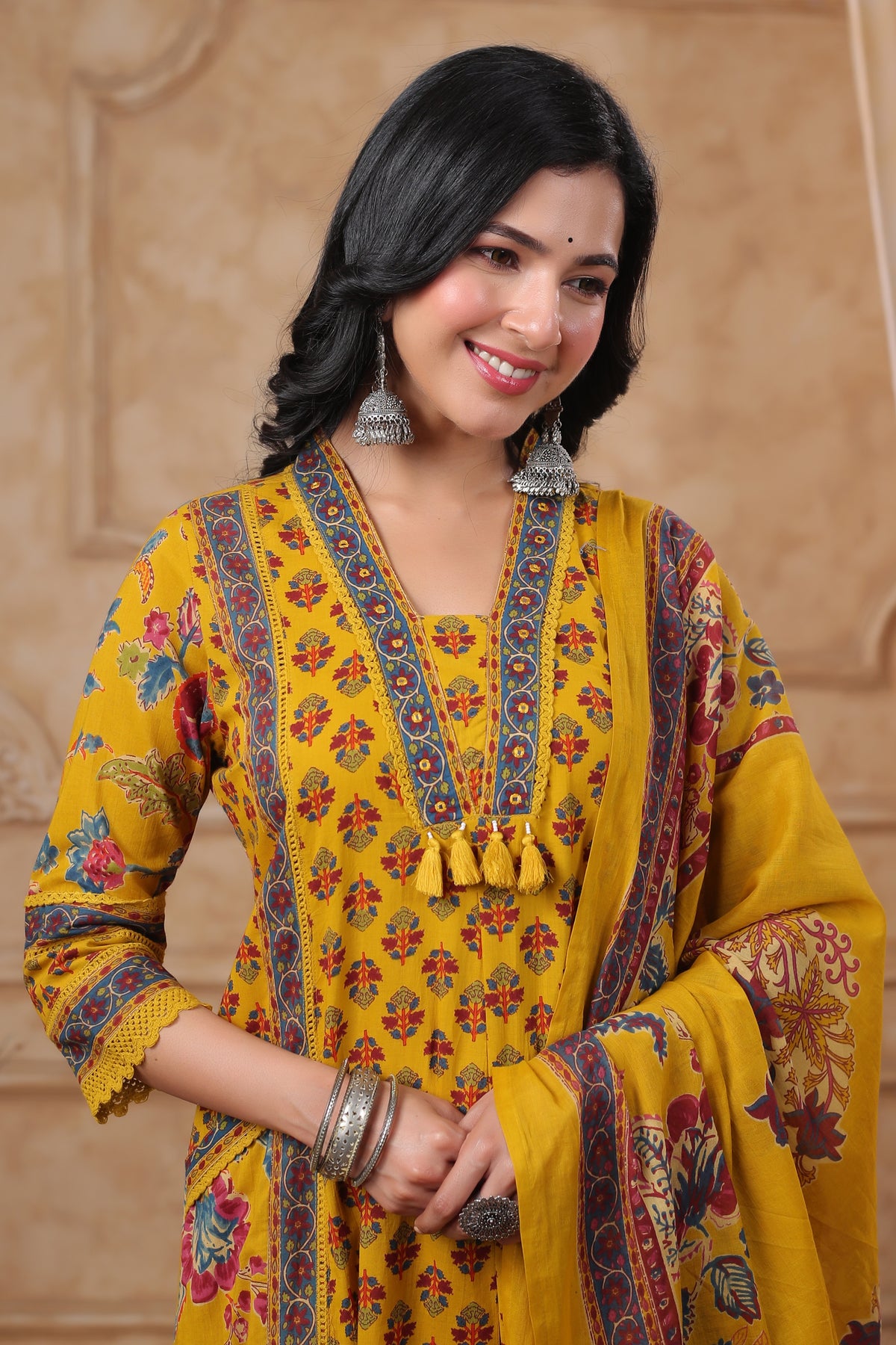 HIYA MUSTARD PRINTED COTTON SUIT SET