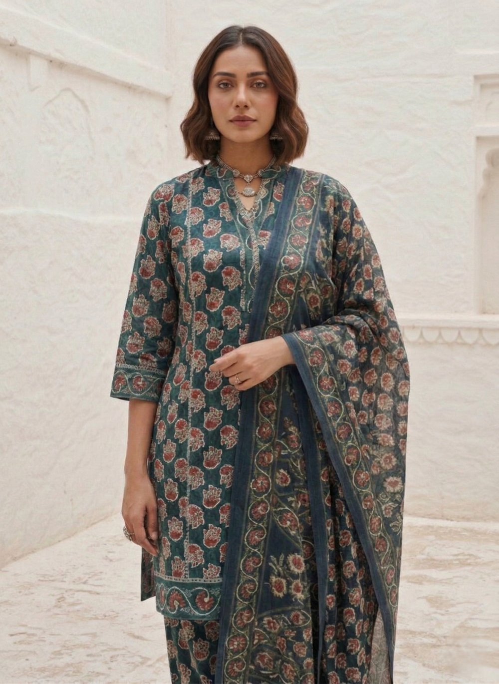 Swades peacock cotton suit set