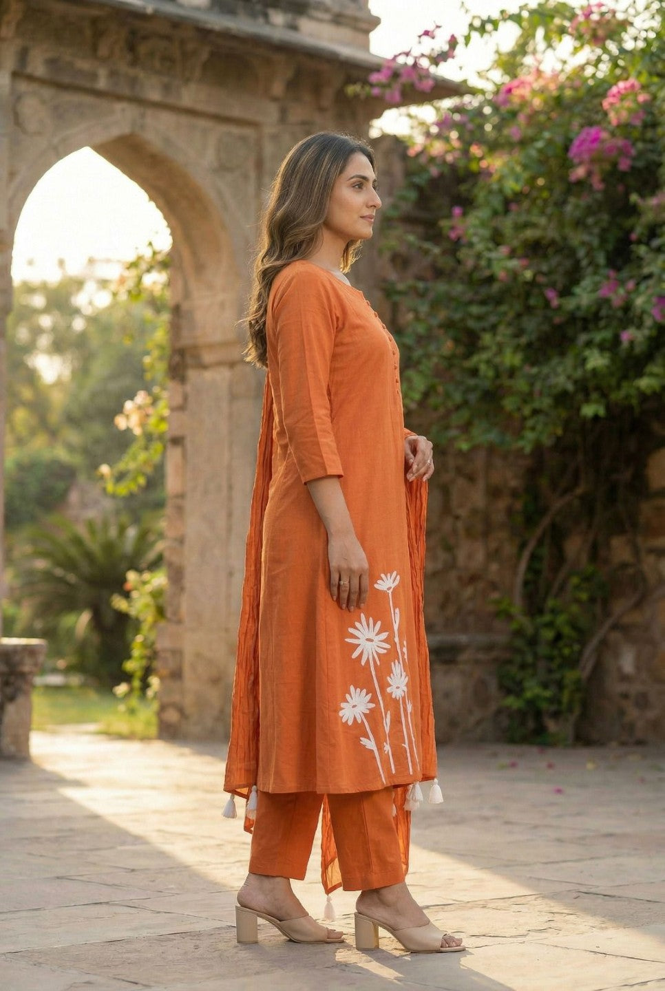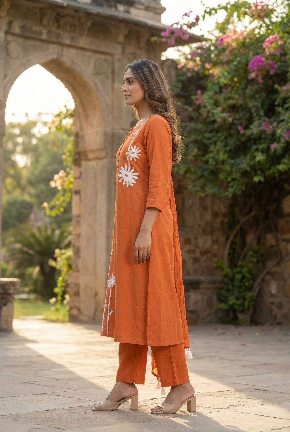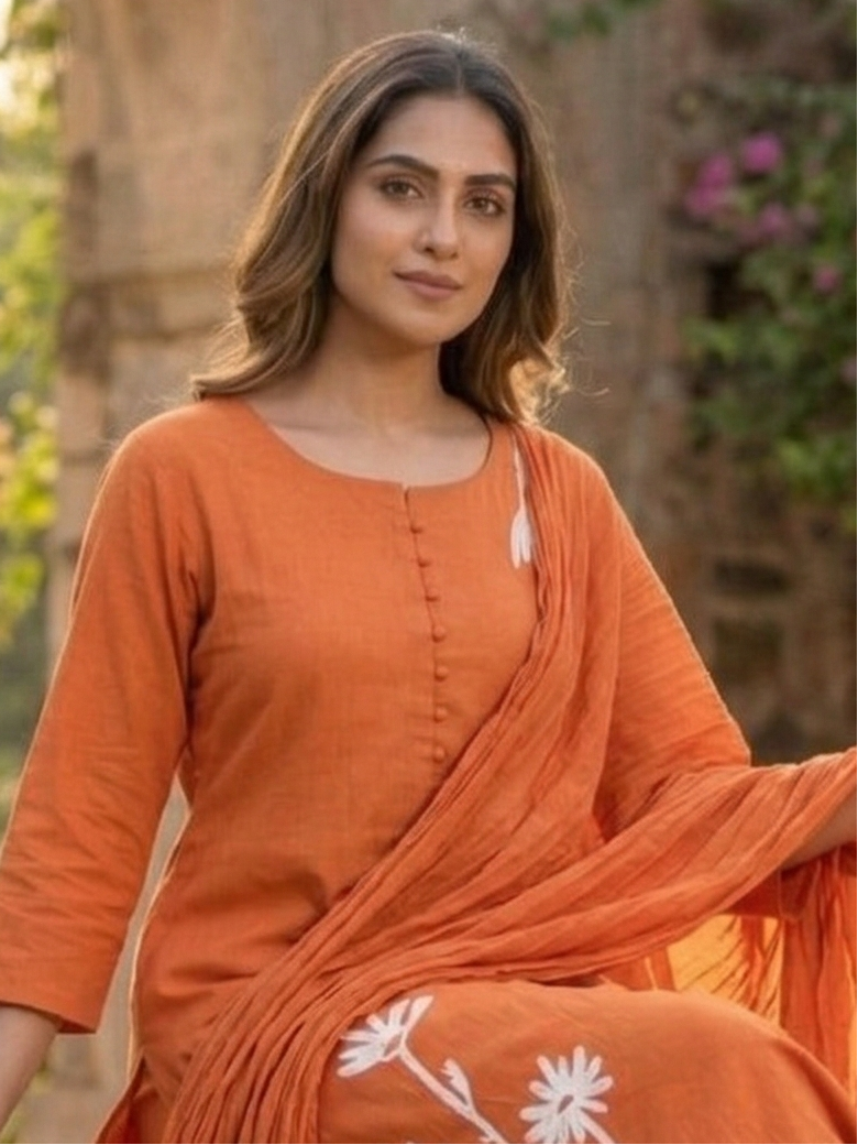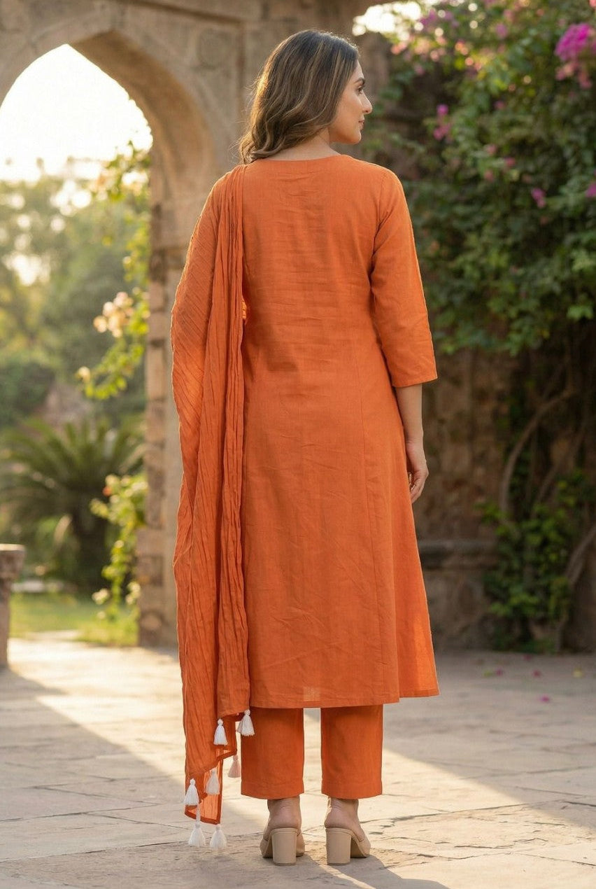 Tanu tangerine cotton embroidery suit set