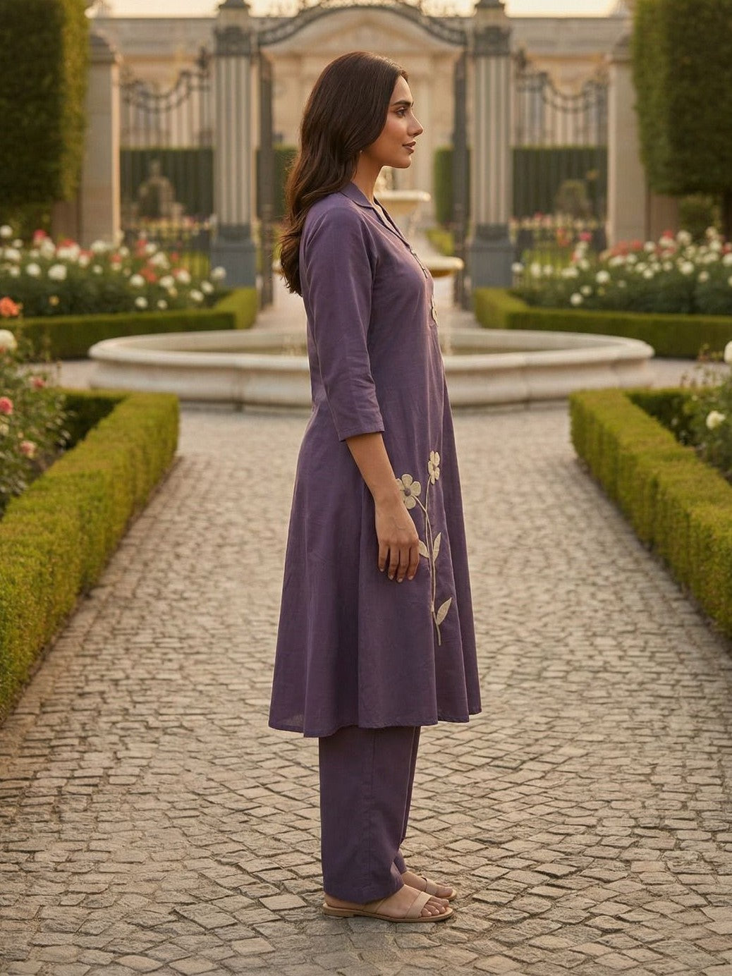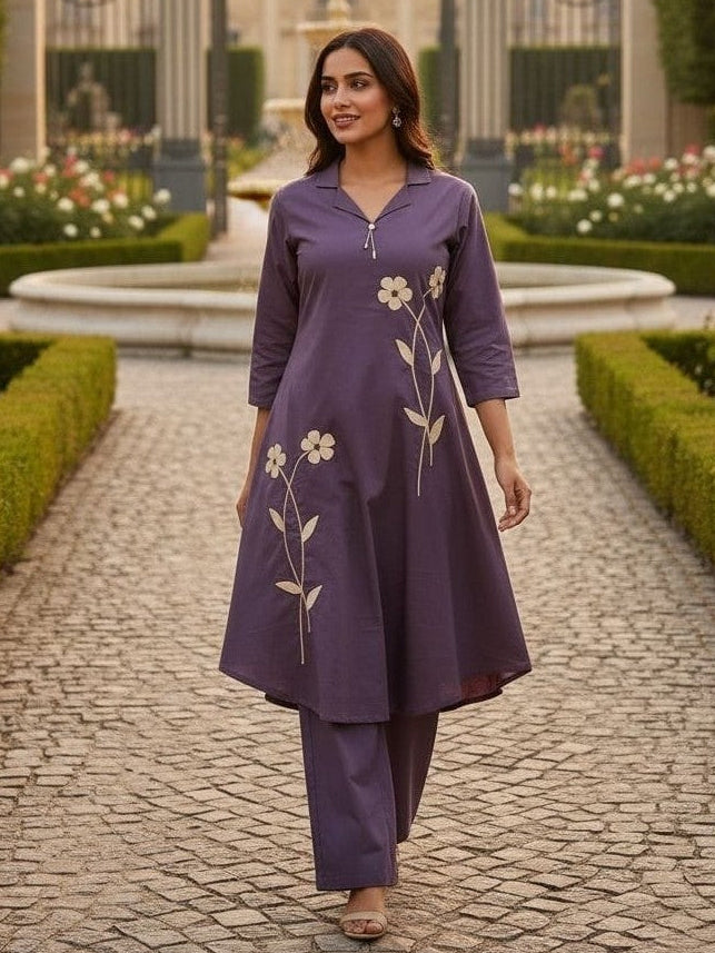 Tatva iris embroidery cotton kurta pant set