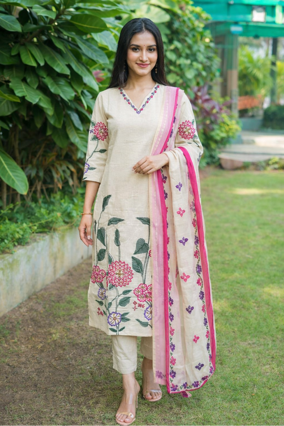 Viyona Flora Embroidered Kurta Pant Set