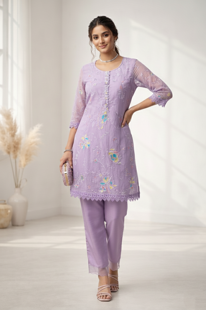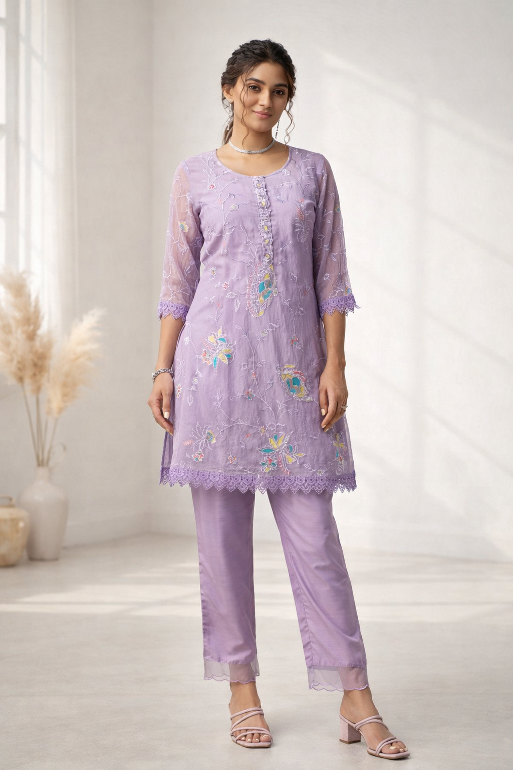 Sumaiya Orchid Embroidery Kurta Pant Set