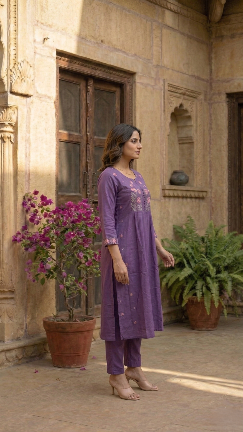 Chandri Lavender Embroidered Kurta Pant Set