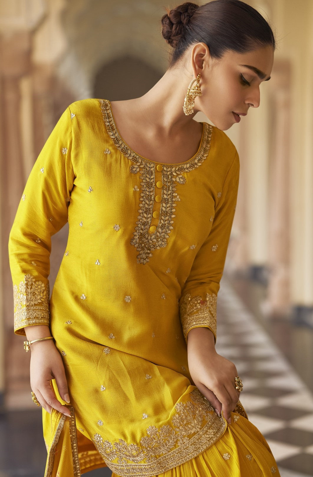 Umaira Canary full work gharara suit set