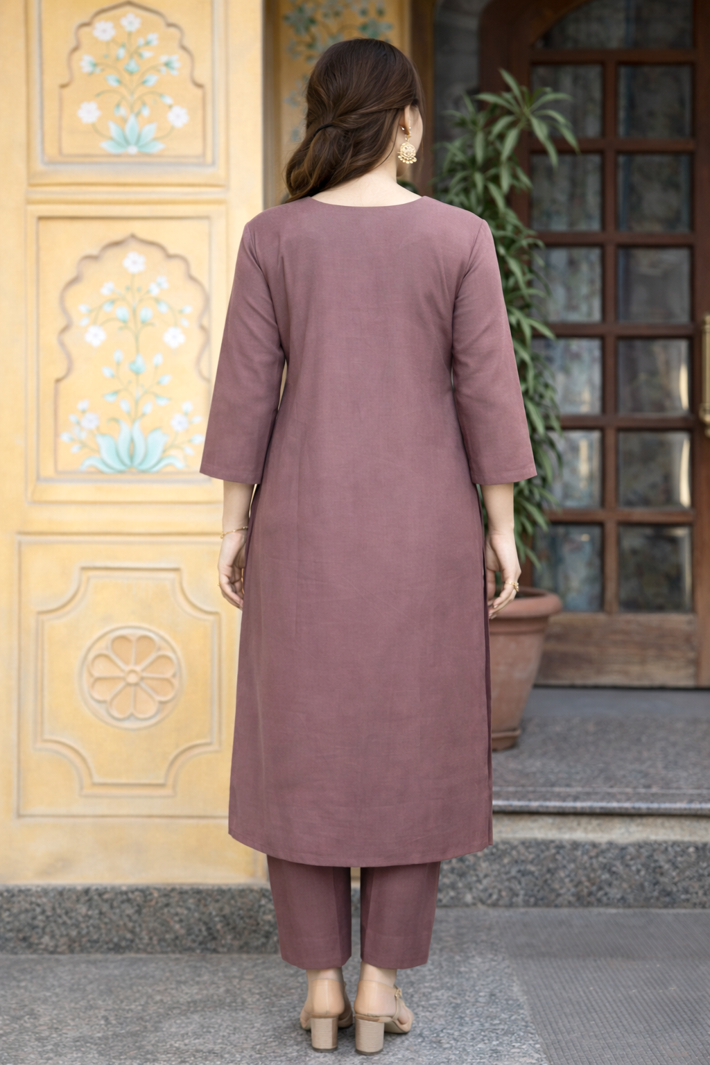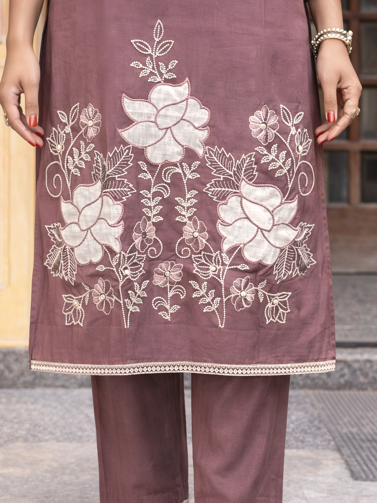 Bahara Mauve Embroidered Suit Set