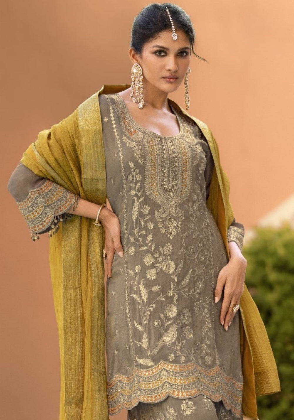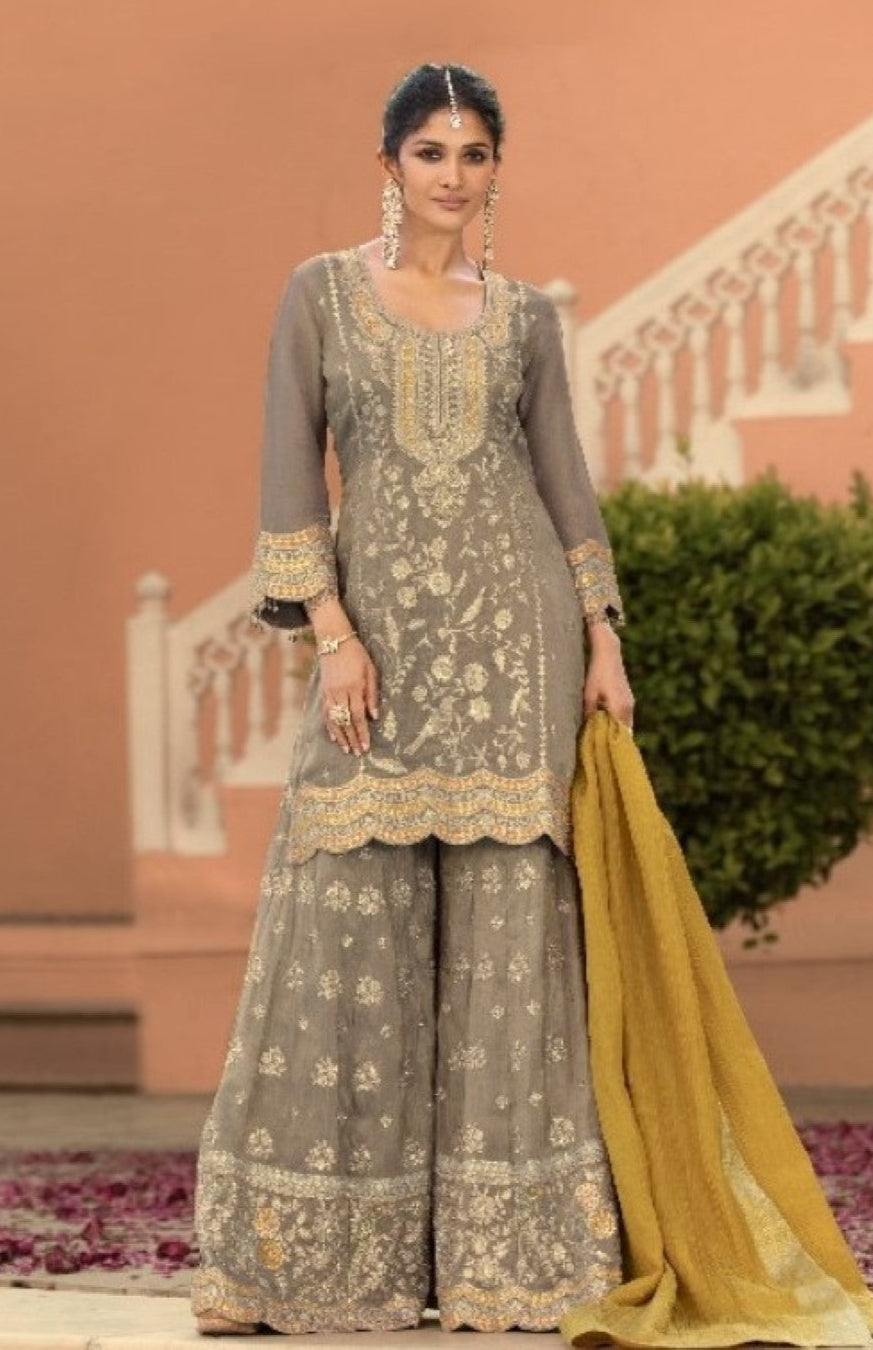 Gaurisha ash full work suit set