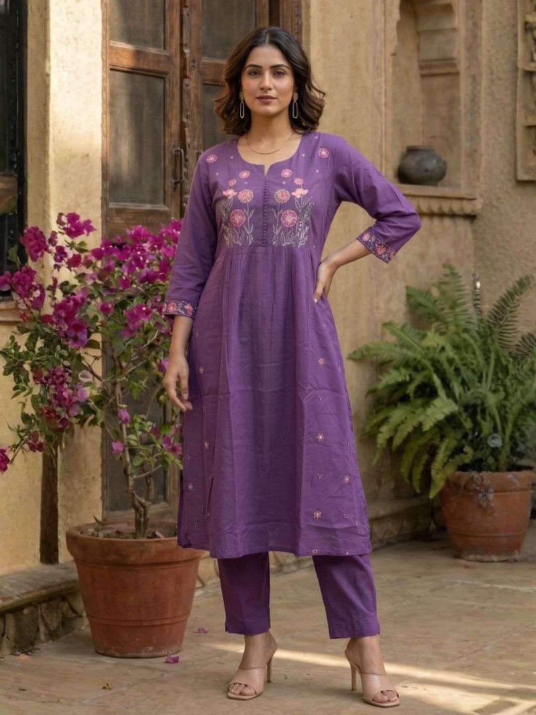 Prisha blossom embroidery cotton Co-ord Set