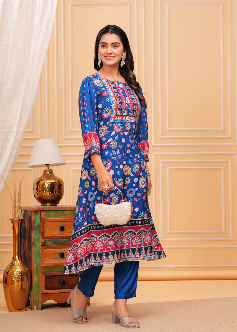 Maurya Azure Premium Muslin Kaftan Pant Set
