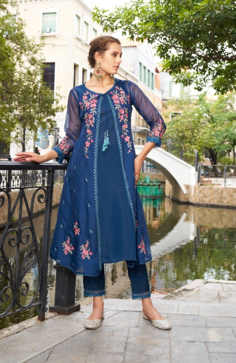 SIREESHA AZURE EMBROIDERY DESIGNER ORGANZA JACKET SET