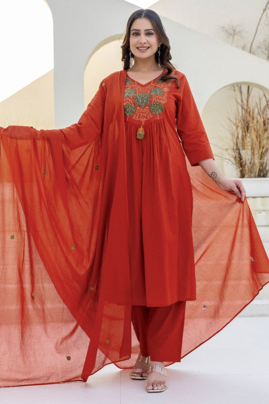 Shruti Rust Embroidered Suit Set