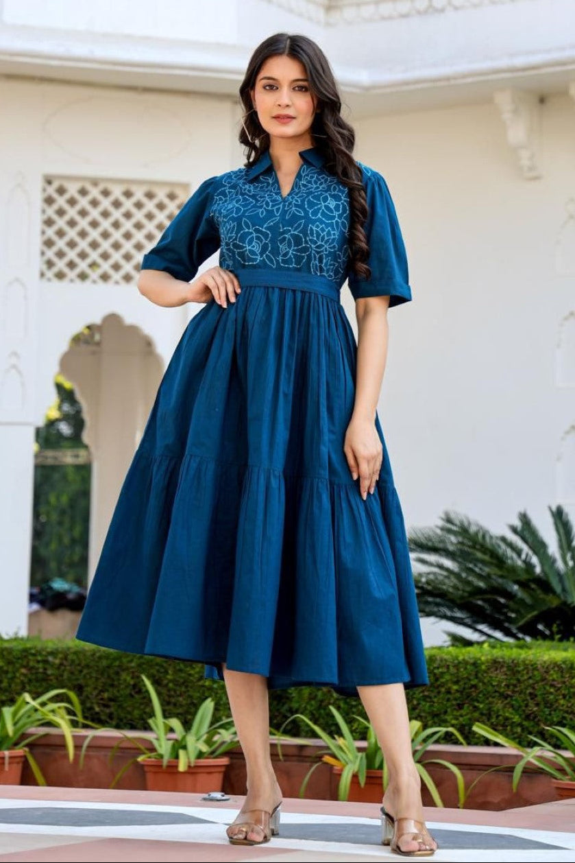 Esmera azure embroidery cotton dress