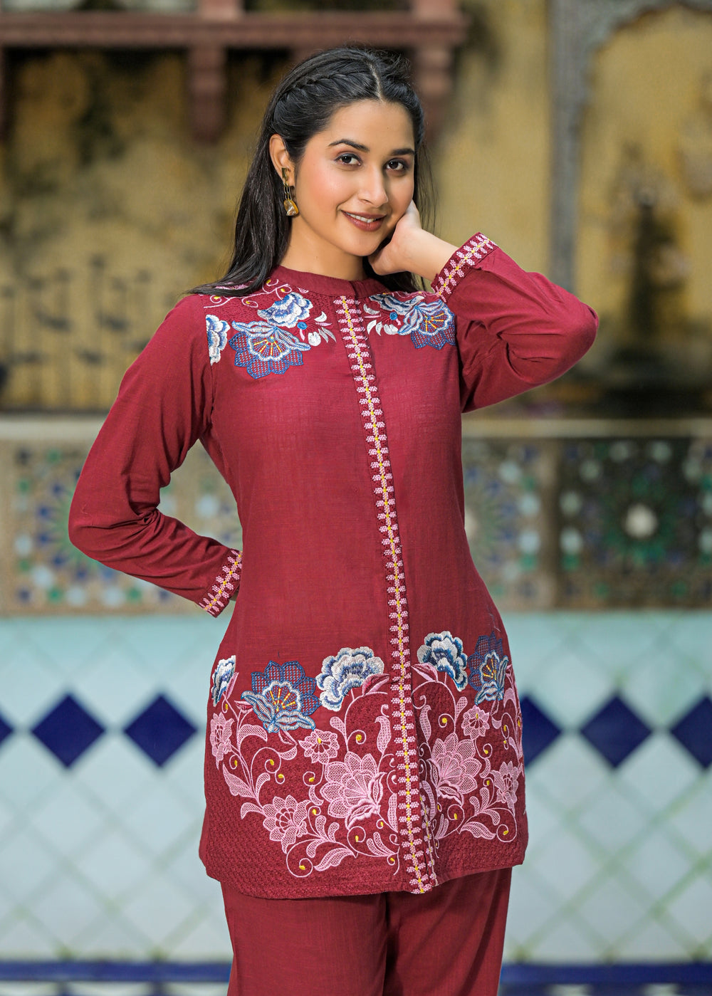 Sanjana Burgundy Embroidered Co-ord Set