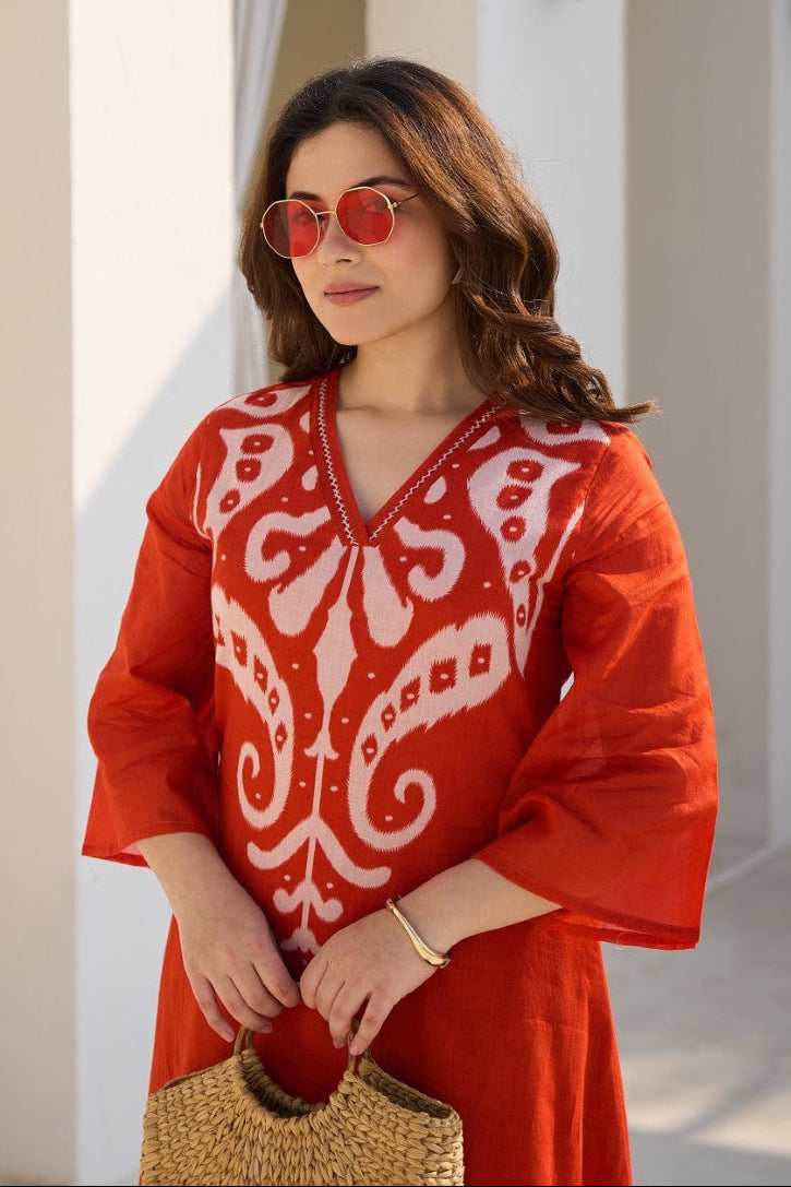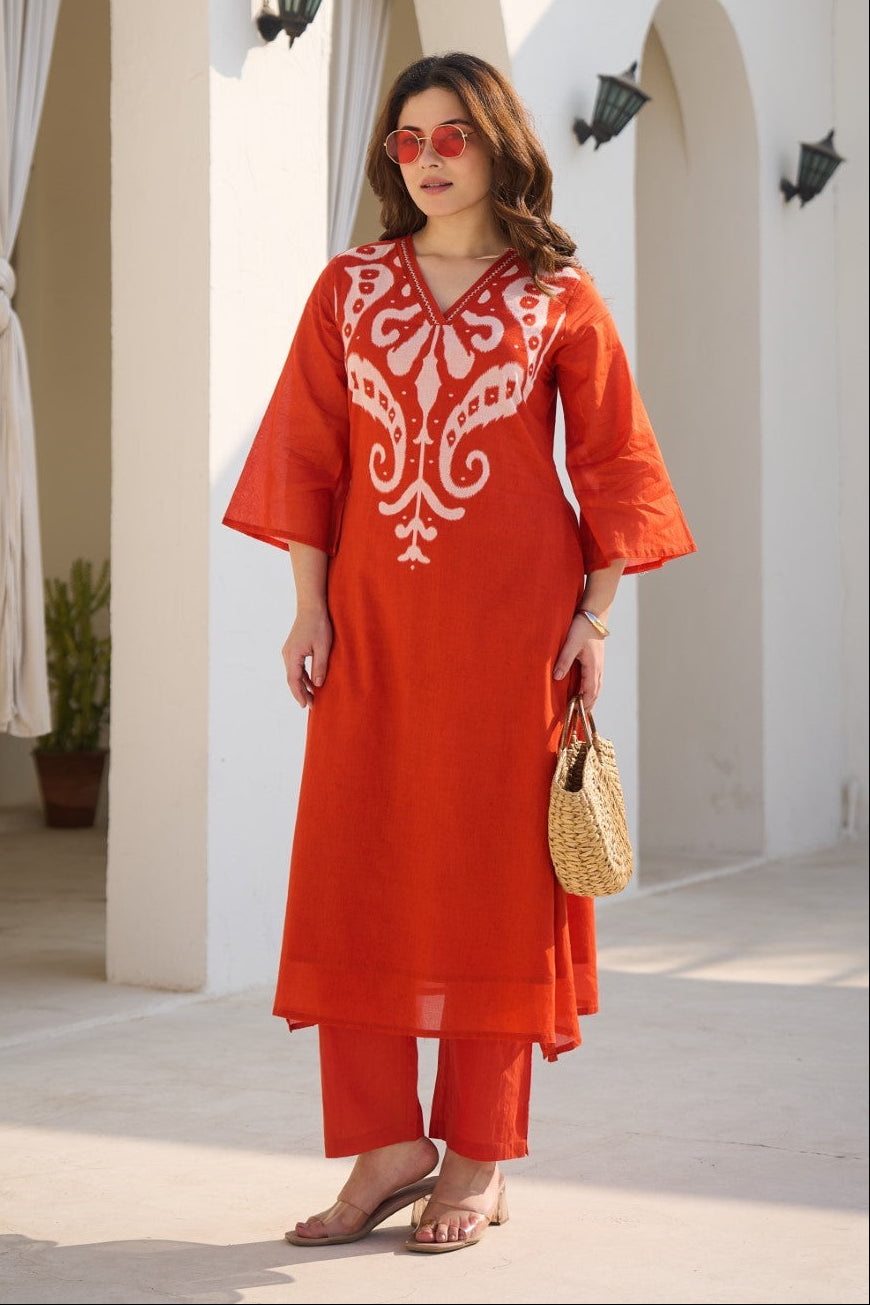 Kabool Firebrick printed kurta pant set