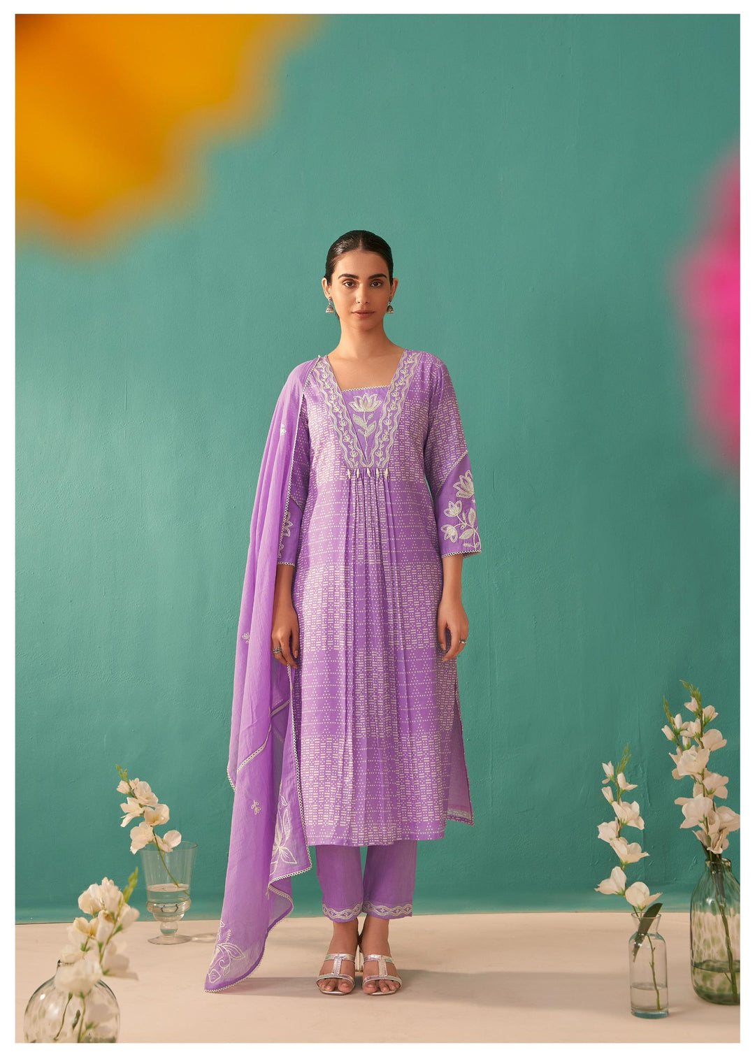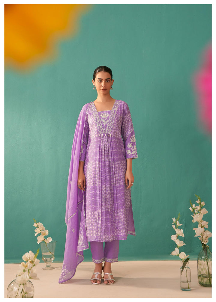 Nadira Lilac Embroidered Lawn Cotton Suit set